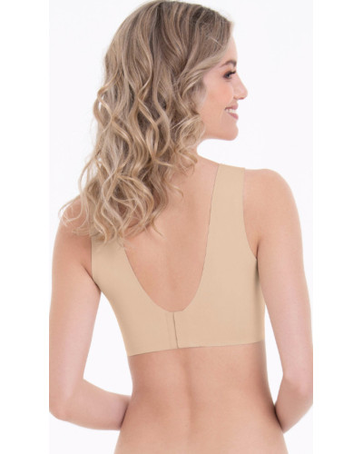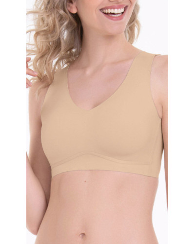 Базовый бежевый топ с формованными чашечками – идеальный выбор для комфорта и лаконичного стиля. Плотные чашки созданы по молдинговой технологии без швов, что обеспечивает идеальную посадку и гладкий силуэт под одеждой. Края топа обработаны лазером, благодаря чему они не давят и не оставляют следов на коже. Топ не имеет косточек, что делает его максимально удобным для ежедневного ношения. Этот базовый универсальный элемент гардероба подходит как для спорта, так и на каждый день.