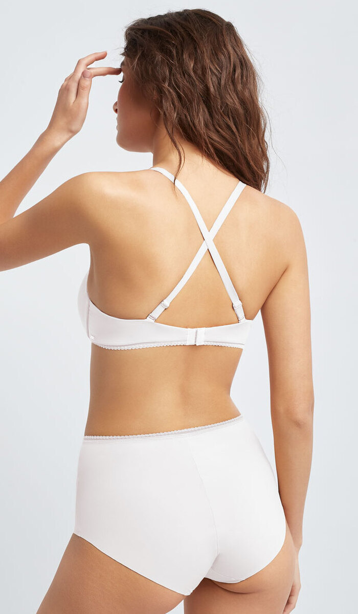 Гладка формована чашка абсолютно непомітна під будь-яким одягом, забезпечуючи ідеальний силует. Справжній скарб всередині: внутрішня частина пуш ап чашки дубльована інноваційним Soft lining – це надзвичайно м'яка, оксамитова тканина, що ніжно торкається твоєї шкіри. Подвійний тонкий матеріал пояса та надійна підтримка на кісточках гарантують відмінну фіксацію та відчуття впевненості. Тонкі бретелі-трансформери регулюються, дозволяючи адаптувати модель під твій образ.