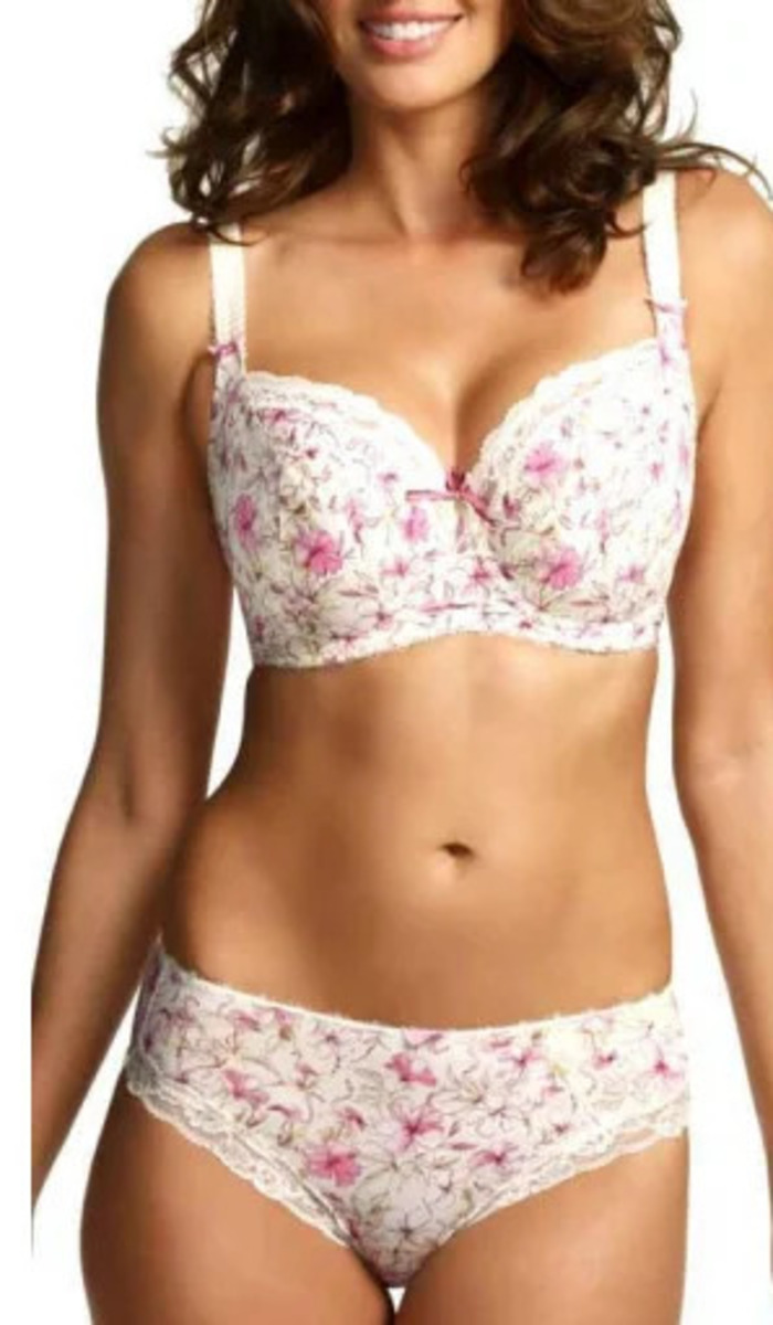 Це не просто білизна – це особлива турбота про розкішні форми. Рідкісний бюстгальтер з м'якою чашкою створений спеціально для дуже великих грудей. Він гарантує не лише надійну підтримку, але й абсолютний комфорт без стиснення. Бюстгальтер прикрашений освіжаючим рожевим квітковим принтом, який миттєво піднімає настрій. Квіткові мотиви гармонійно поєднуються з щільним, фактурним мереживом, яке обрамляє чашки, додаючи комплекту витонченої елегантності та спокусливості.